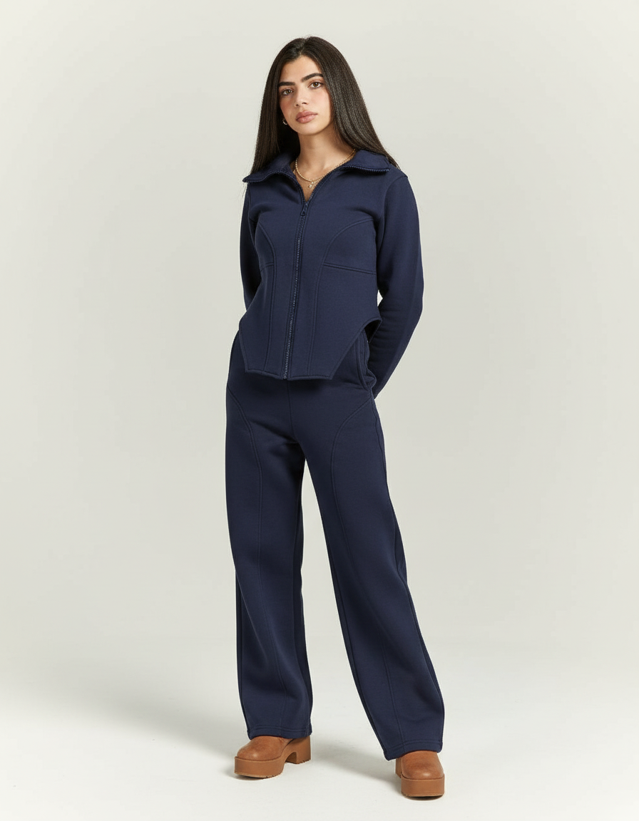 The Snygg Set redefines versatility with a chic corset jacket and cozy sweatpants made from premium 100% cotton, perfect for anything from coffee dates to errands. Style it up or down.